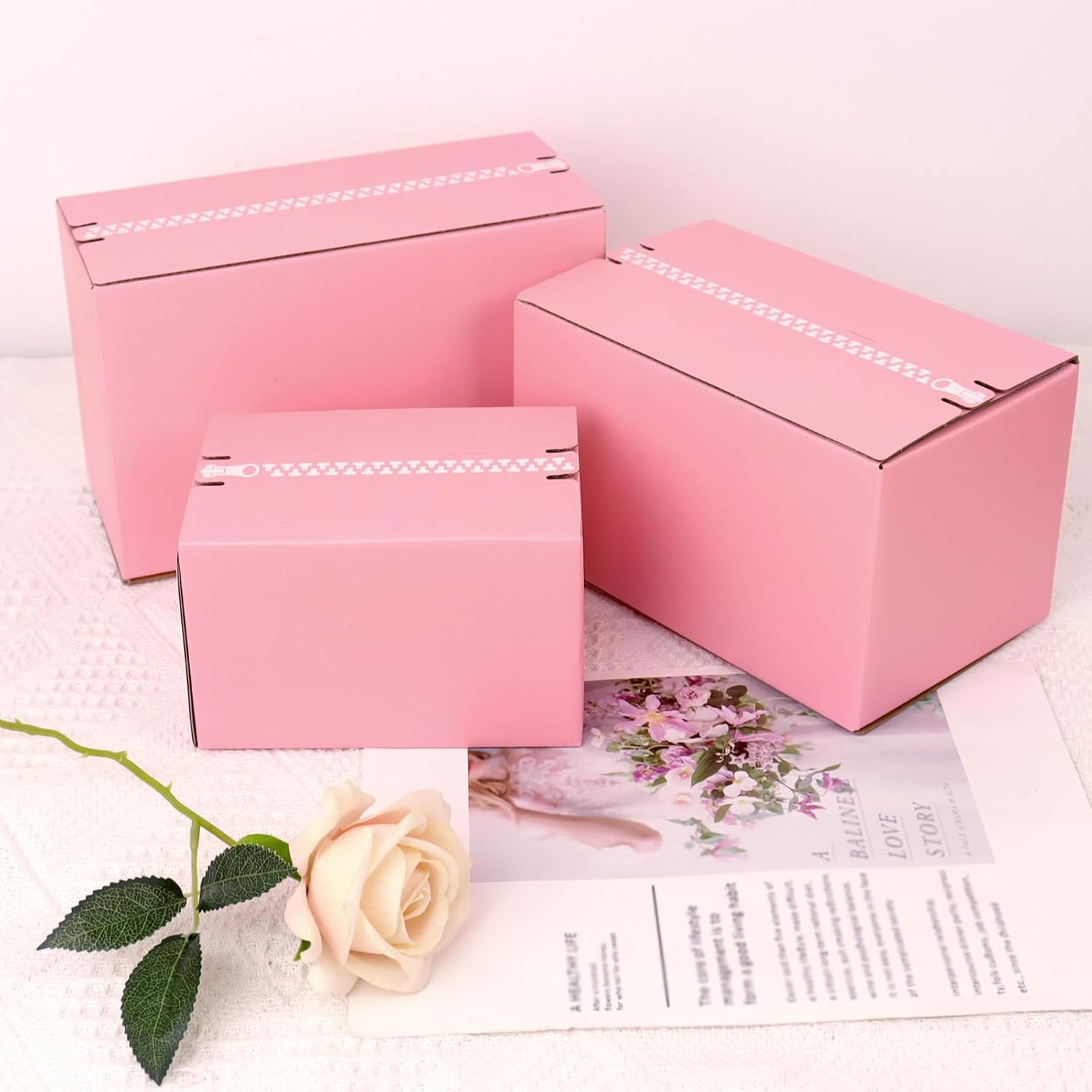 9x4x6 Pink Shipping Boxes with Tear Strip, 30 Pack Self-Adhesive Shipping Boxes Medium, Zipper Corrugated Mailing Boxes for Packaging Small Business
